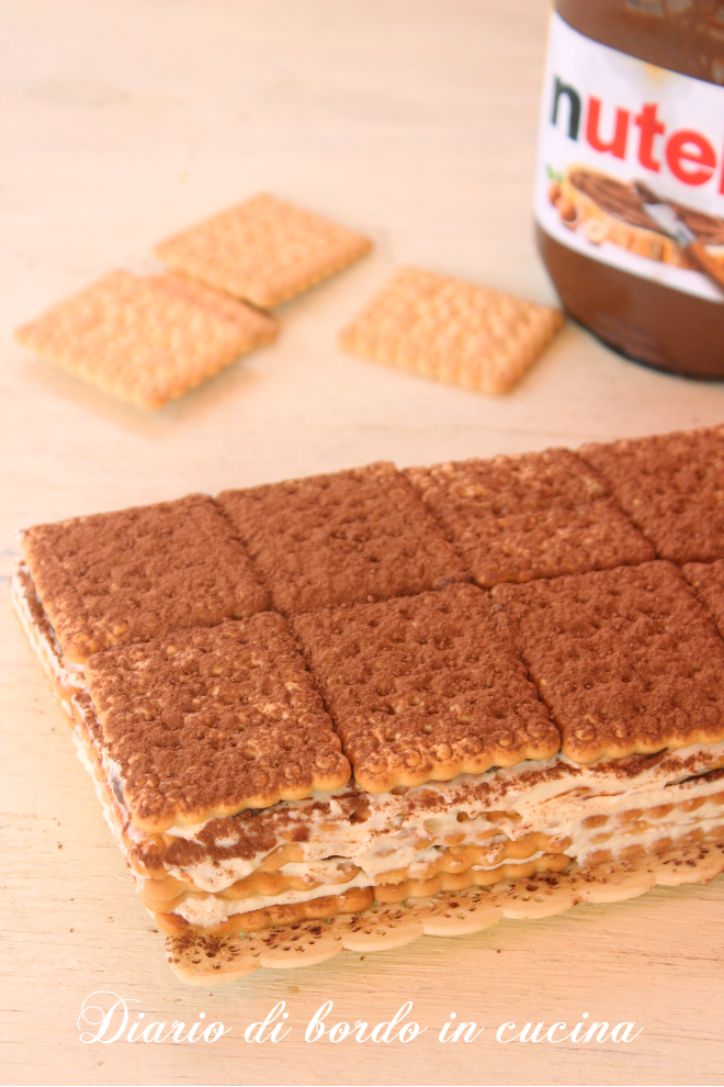 Bolo de bolacha com mascarpone e nutella, a sobremesa fria que se prepara rapidamente, adequada para qualquer ocasião. É uma sobremesa que não necessita de cozimento, algo muito apreciado, especialmente nos dias quentes de verão. É feita com poucos ingredientes: bolachas, mascarpone, nutella e creme de leite. A calda para as bolachas pode ser feita com leite ou café, mas quem, como eu, adora o sabor dos anos oitenta, pode molhar as bolachas no vermute.
