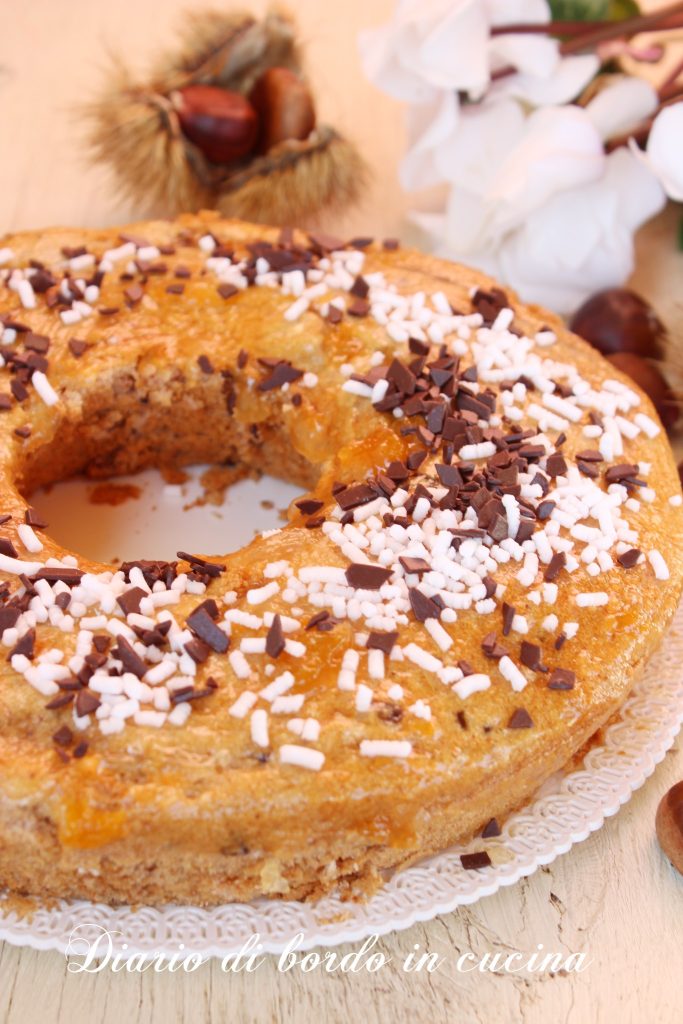 Bolo de castanha macio, um doce com intenso aroma de castanhas. Ótimo para o café da manhã, perfeito para um delicioso lanche de inverno. Para este bolo, são necessárias castanhas cozidas e não farinha de castanha. Para obter o purê de castanha, é preciso descascar as castanhas, cozinhá-las em água levemente salgada com algumas folhas de louro. Quando estiverem cozidas, retire a pele e bata no liquidificador.