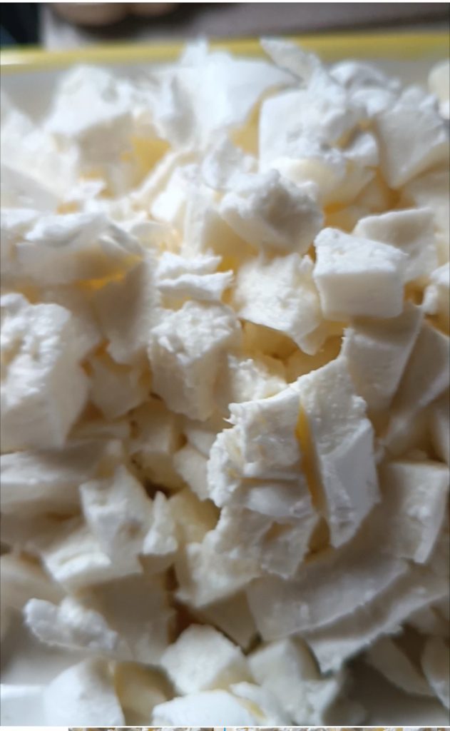 Corte a scamorza em cubos.