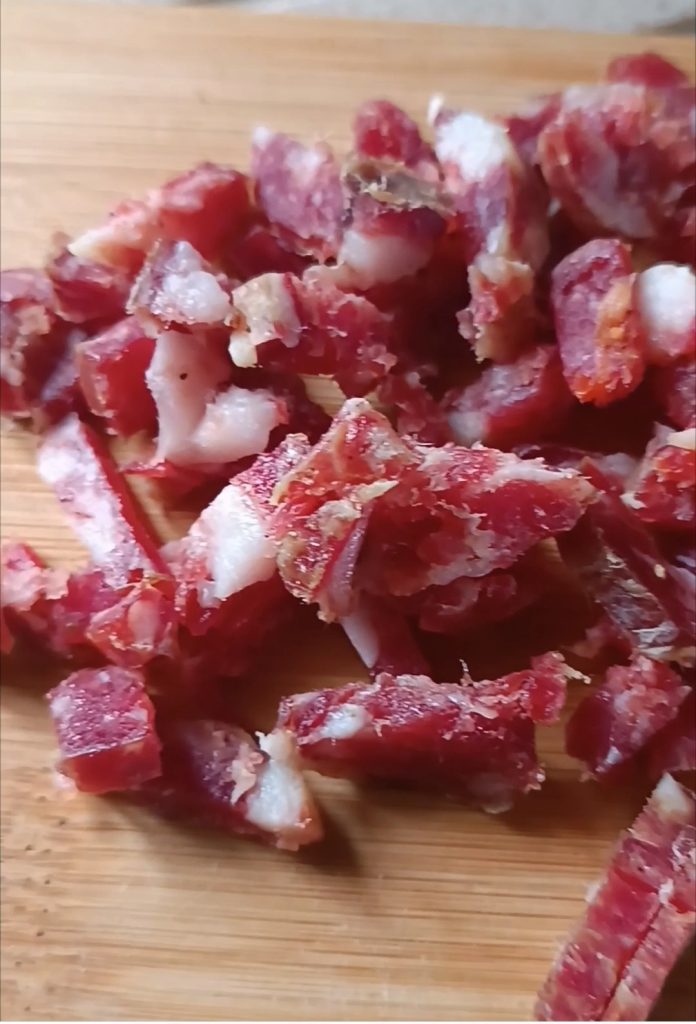 - 200 g linguiça seca doce (Ou salame napolitano)