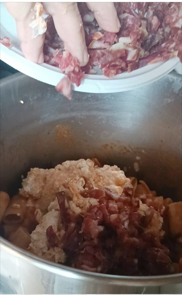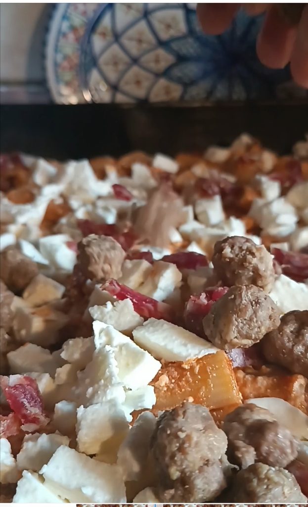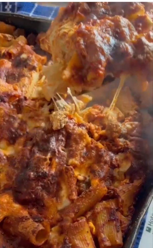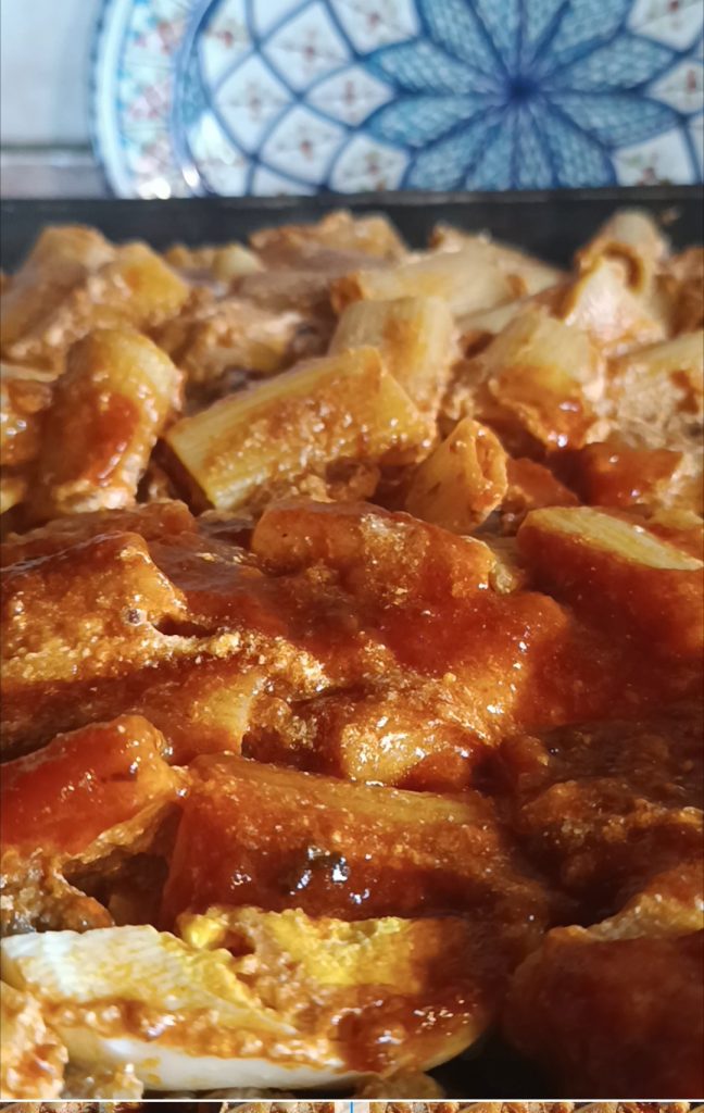 Eu preparo de maneira tradicional, prefiro com rigatoni e definitivamente amo temperá-lo com um ótimo ragù de carne. Coloco tudo o que é necessário: linguiça seca, almôndegas, ovos cozidos, scamorza… tudo cortado grosseiramente e na hora de assar não pode faltar a “arruscatura”, ou seja, alguns macarrões levemente queimadinhos!