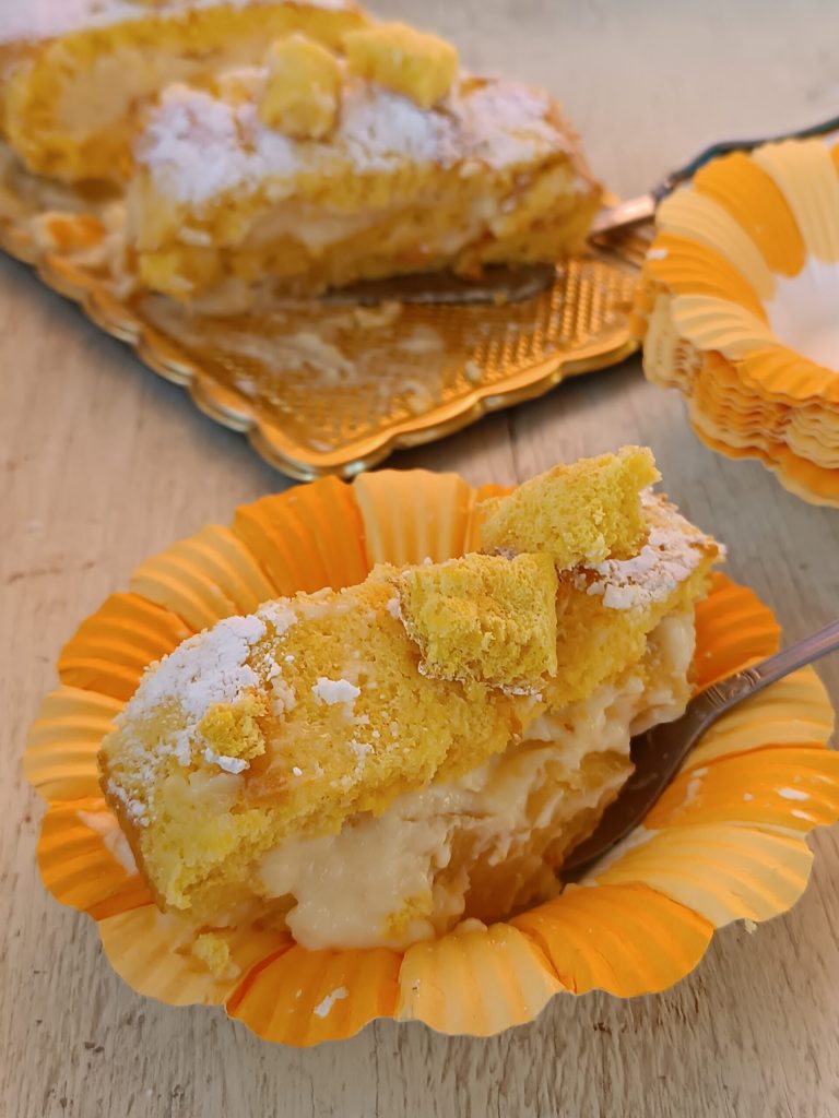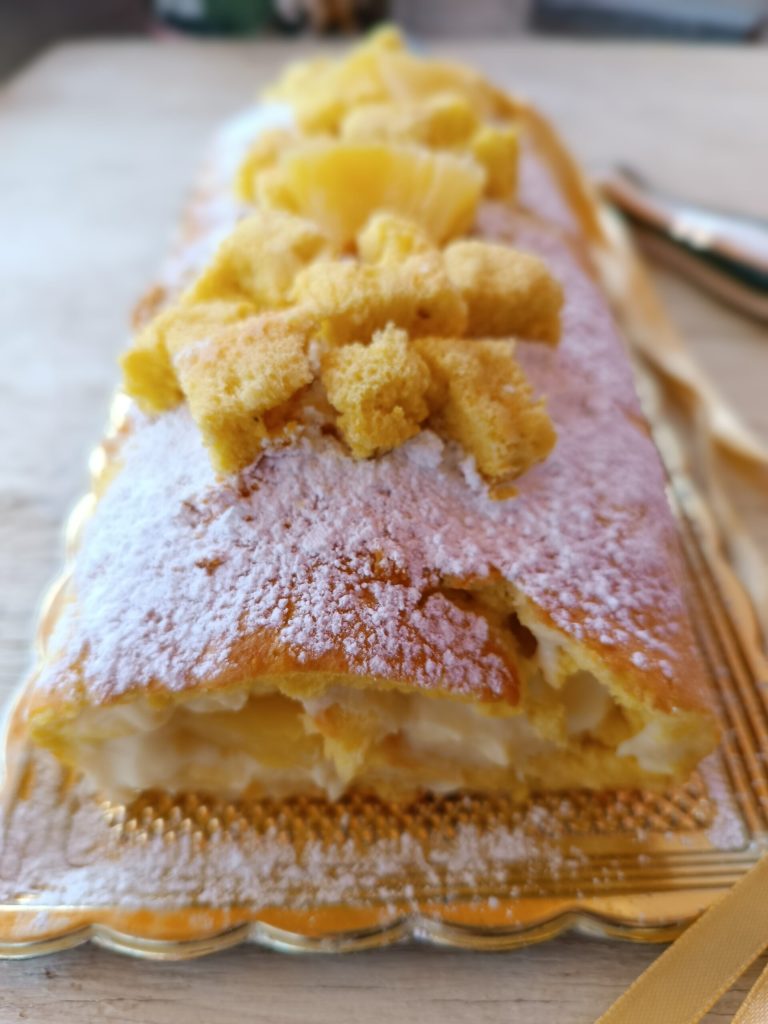 Rocambole mimosa é uma sobremesa simples feita com uma massa de biscoito macia e creme chantilly.