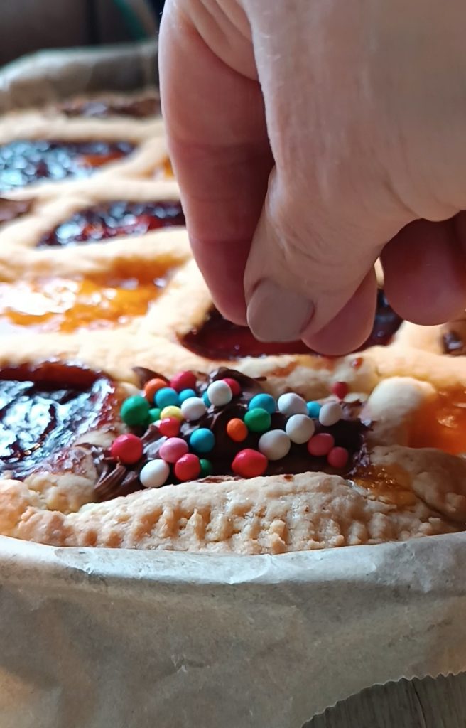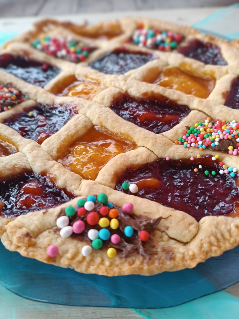 Prepare a massa frolla colocando em uma tigela a farinha, o açúcar, a manteiga em temperatura ambiente e em pedaços. Adicione os ovos, o sal, a casca de limão ralada e o fermento. Comece a misturar tudo com as mãos, termine de amassar na bancada. Deixe a massa descansar por cerca de uma hora na geladeira.