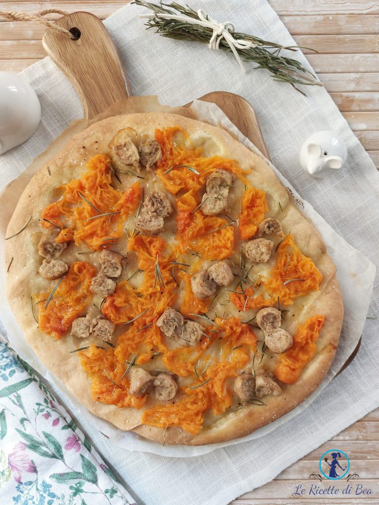 Posso então sugerir preparar a Focaccia de linguiça e abóbora pouco antes de ser servida, já que uma base pronta ficará crocante apenas quando recém-assada, podendo amolecer e não ter a mesma consistência depois. A receita é muito simples, rápida e, portanto, perfeita para ser preparada e servida em cerca de 30 minutos. Isso nos permitirá desfrutar de uma focaccia crocante e deliciosa sempre que quisermos. Pense em todas as vezes que chegamos tarde para o jantar e não temos tempo, obviamente, de amassar também a base para focaccia.