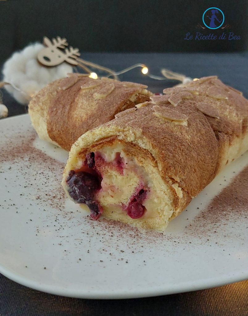 Poderia faltar uma nova receita com a Reciclagem do Pandoro? Obviamente não, o Tronco de Pandoro com creme de confeiteiro e calda de frutas vermelhas nasce assim. Não, brincadeira, não foi por acaso, estava vasculhando nas semanas passadas as palavras-chave que trazem os usuários ao meu blog, estava cruzando dados e estatísticas dos Natáis passados e no final o título e a receita me foram sugeridos por vocês! No blog há alguns anos já está presente a Receita do Rolo de Pandoro com Nutella e creme caseiro mas não era suficiente. De fato, a palavra-chave mais “procurada” era: rolo de pandoro com creme de confeiteiro.