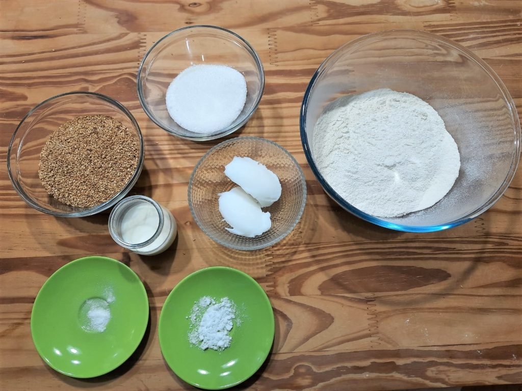 Os biscoitos reginelle com gergelim sem ovos estão prontos.