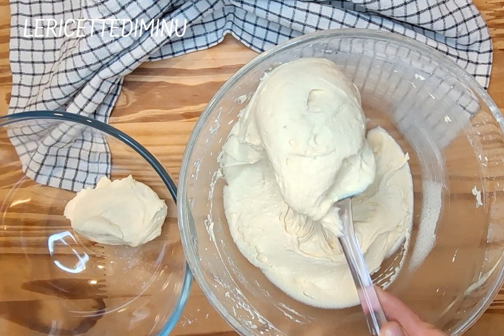 Após obter uma massa homogênea, divida-a em duas partes, colocando cada uma em tigelas diferentes.