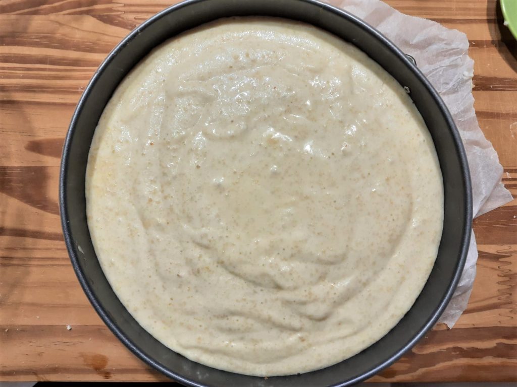 • Quando a massa estiver lisa, despejá-la em uma forma desmontável e antiaderente bem untada com desmoldante (para a receita clique aqui).