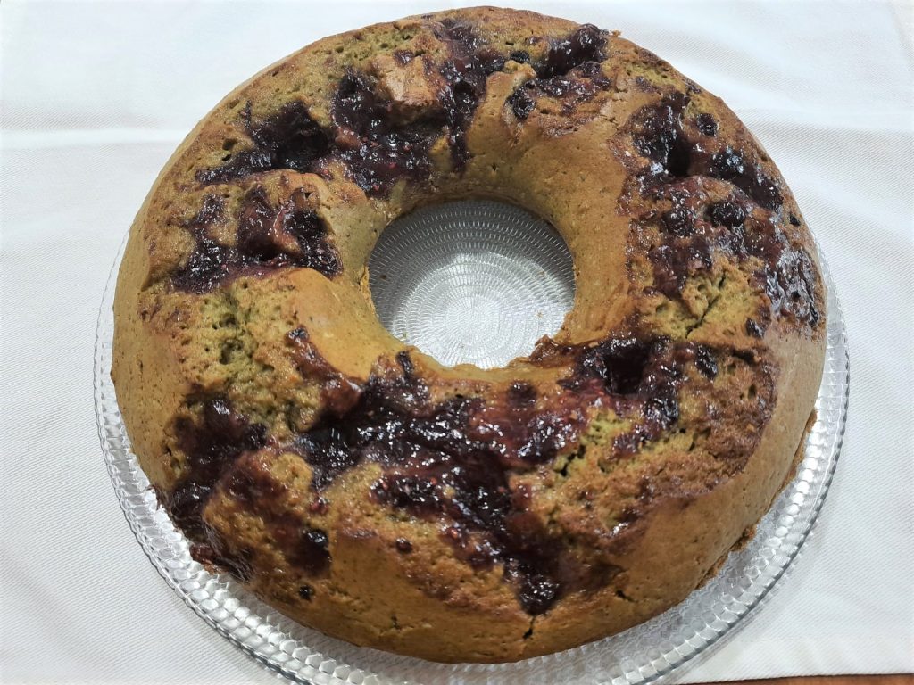 Espalhe uniformemente a geleia em colheradas por cima. Asse em forno pré-aquecido a 180 graus, na prateleira média baixa do forno estático, por cerca de 35 minutos.
