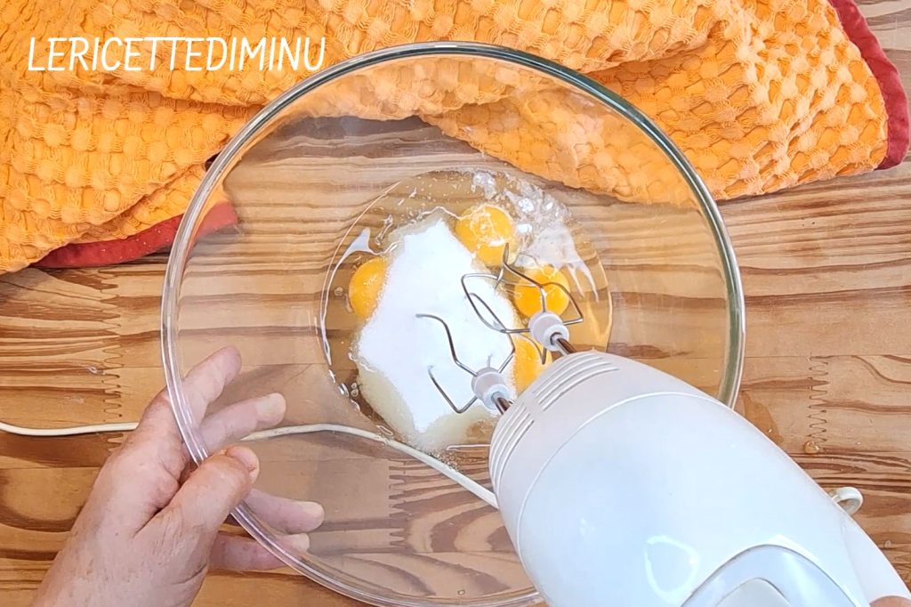 Em outra tigela grande, com batedores elétricos, bata os ovos, o açúcar e a vanilina até ficarem fofos e espumosos.