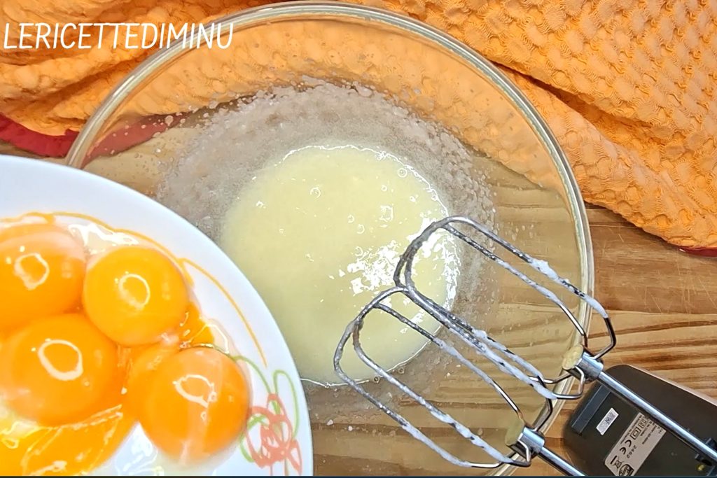 Em outra tigela, sempre com as batedeiras elétricas, misture a manteiga derretida com o açúcar. Quando ficar homogêneo, adicione as gemas, continuando a bater.