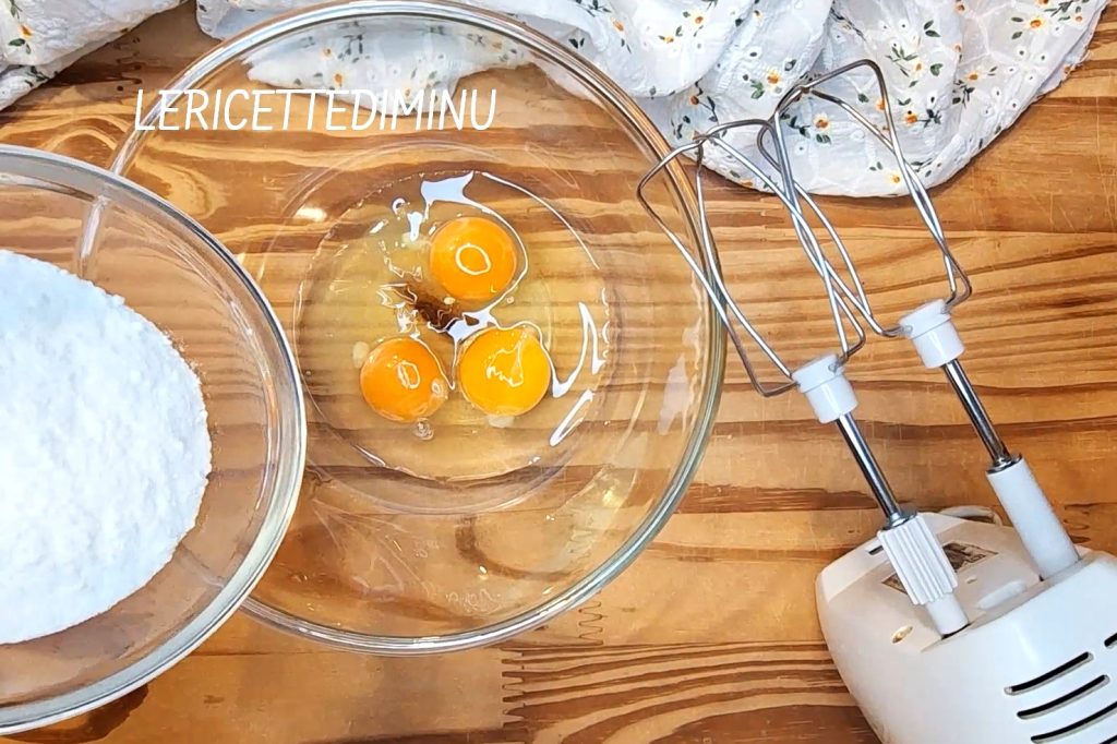 Em uma tigela separada, ainda com a batedeira elétrica, bata os ovos com o extrato de baunilha e o açúcar até ficarem espumosos e volumosos.