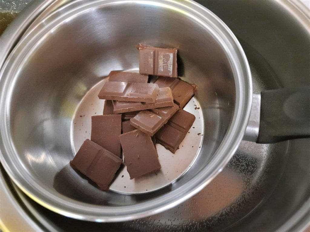 Para preparar o bolo Pan di stelle light, comece derretendo o chocolate em banho-maria.