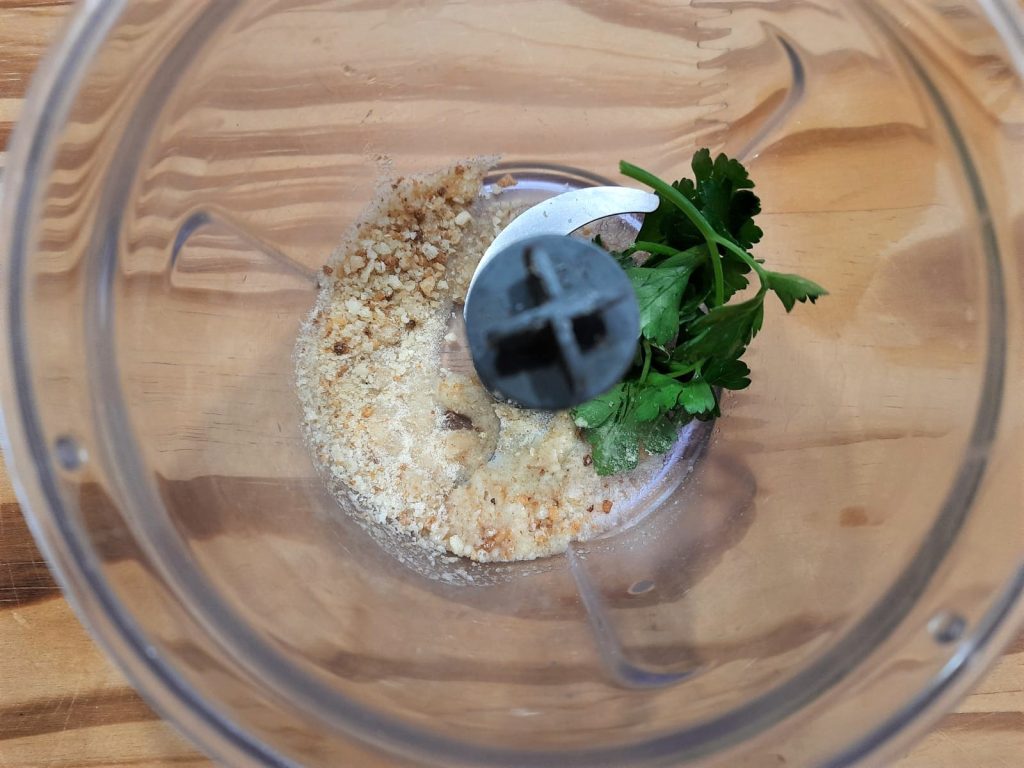 Bata a farinha de rosca (umedecida com uma colher de água) com a salsa.
