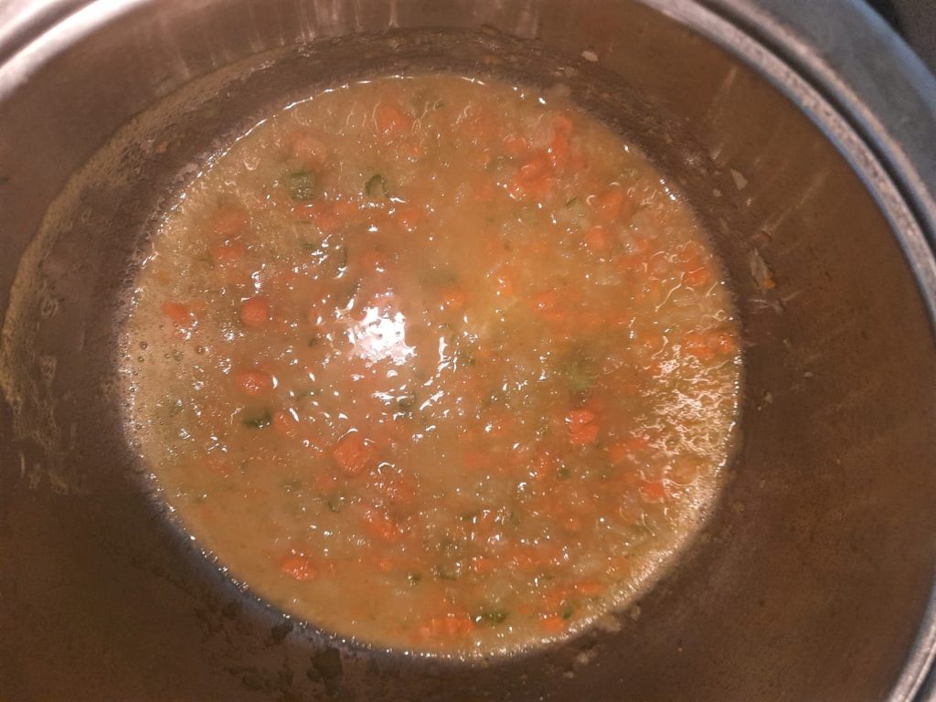 Adicione um pouco de água e bata tudo para transformar os vegetais em um purê. O uso de um liquidificador de imersão é muito conveniente neste caso.