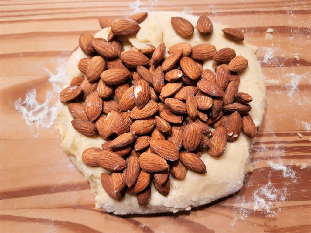 Adicione as amêndoas com toda a pele e, por fim, também as gotas de chocolate amargo.