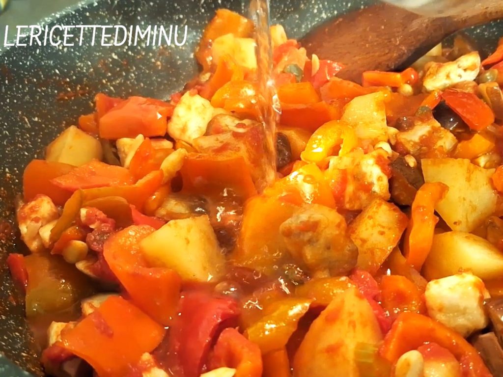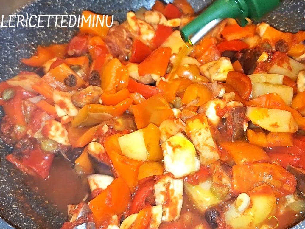Os ingredientes eram os típicos da caponata, mas adicionavam-se batatas, como muitas vezes preferimos fazer na província de Catania.