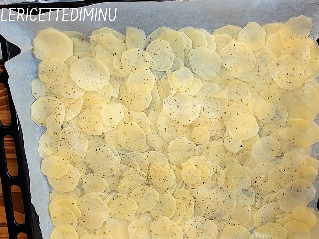 Evite sobrepor muitas fatias em certos pontos, mas, como dito, tente distribuir as fatias de batata criando uma camada uniforme.