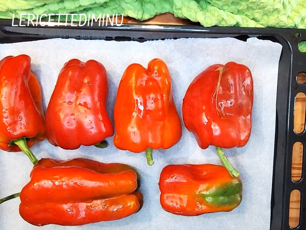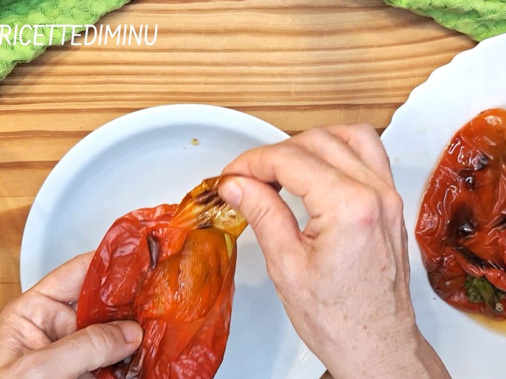 • Nesse ponto, tire os pimentões do forno e feche-os imediatamente entre dois pratos ou em um saco de alimentos vedado na extremidade.