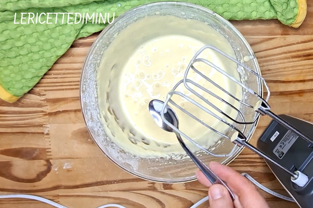 • Às farinhas misturadas, junte o leite aos poucos, incorporando com uma colher de pau ou com um batedor manual.