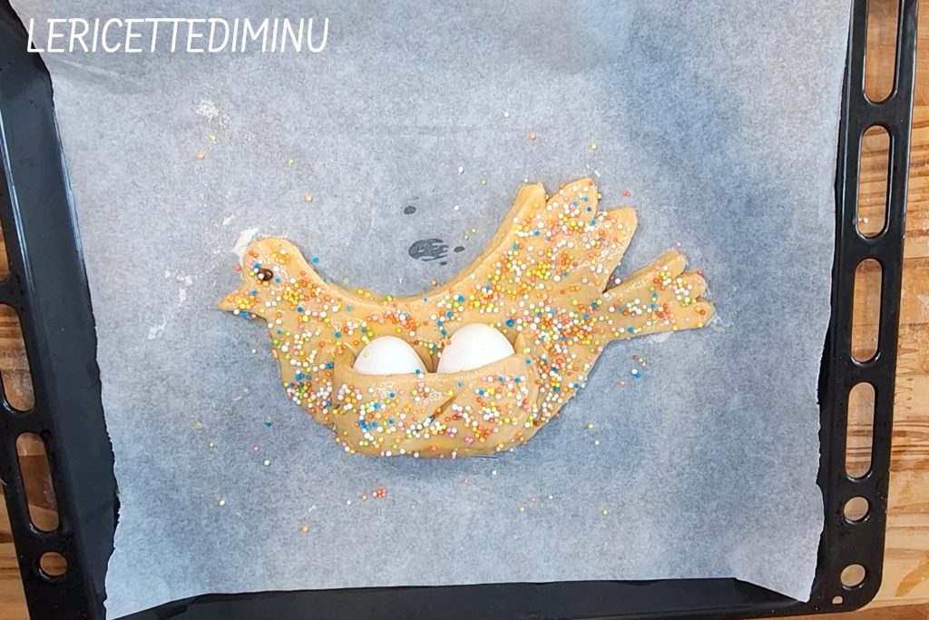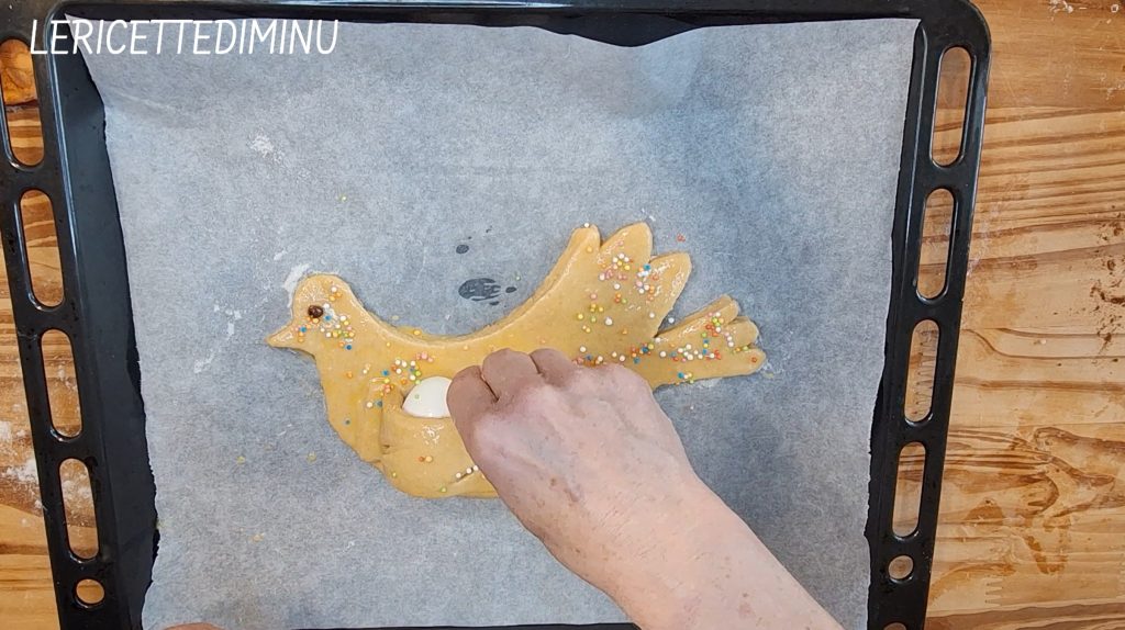 Cuidava-se de colar o olho em pombas e pintinhos, pincelar com ovo batido as formas feitas pelas mulheres e, por fim, polvilhar tudo com muitos diavolini coloridos, ou seja, confeitos redondos coloridos.