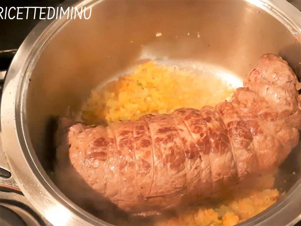 Chegando a esta fase, desligue o fogo, coloque o falsomagro sobre uma tábua de corte e, depois que esfriar por alguns minutos, retire o barbante e corte a carne em fatias grossas com uma faca de assados que não desfie.