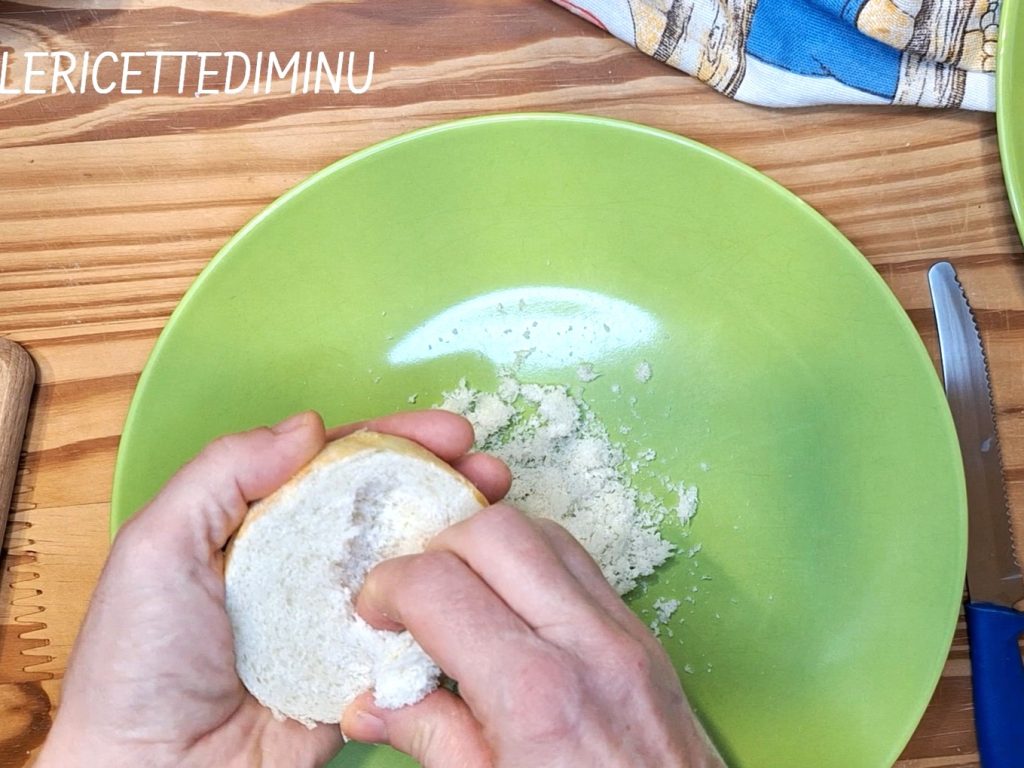 • Como primeira coisa, de preferência com uma faca de pão, corte ao meio os pãezinhos de leite (para a receita clique aqui) e retire o miolo tanto da parte superior quanto da inferior.