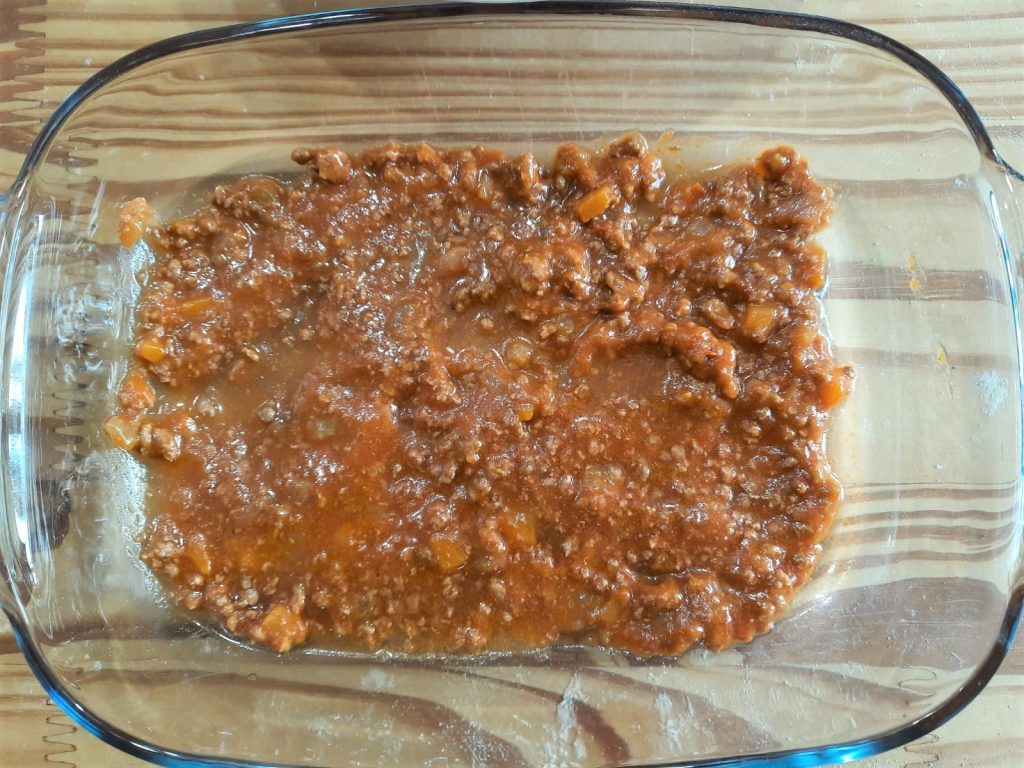 Cubra com ragu a gosto que não deve ser nem muito líquido nem muito denso.
