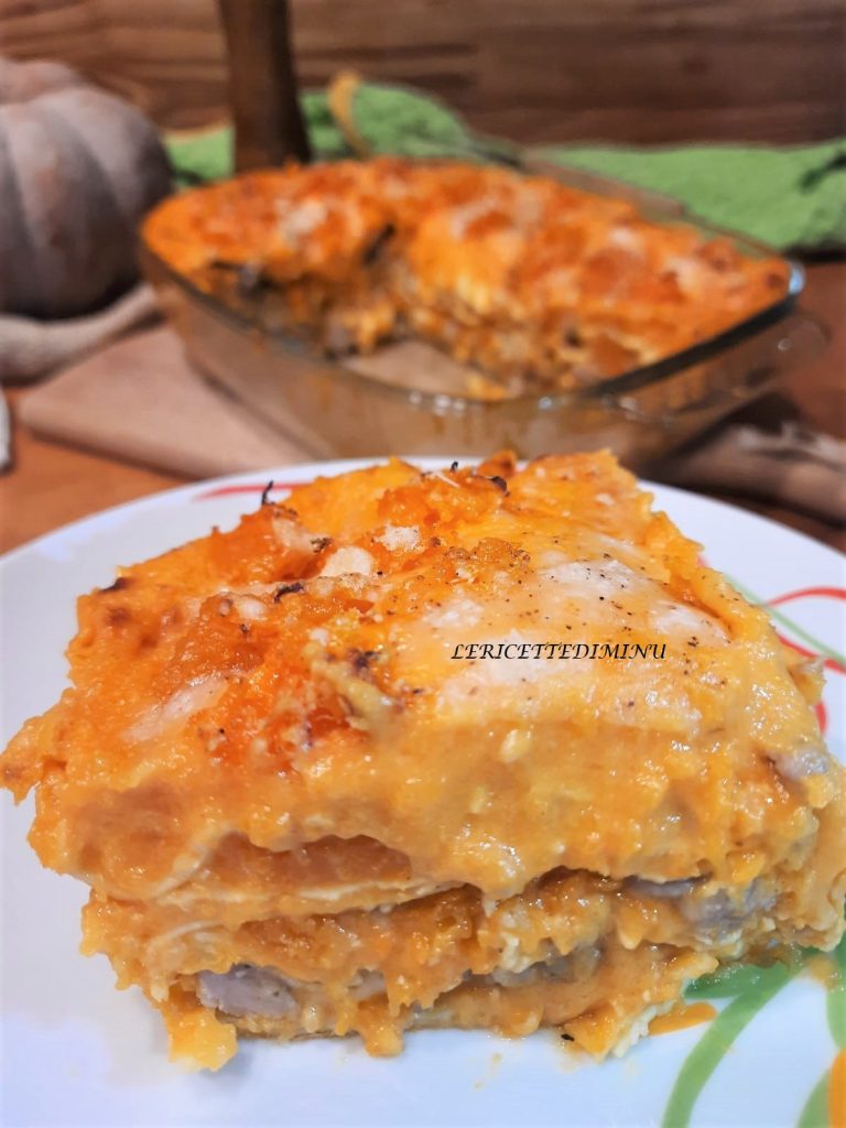 A lasanha de abóbora, linguiça e provolone doce é um prato típico do período do outono, quando a abóbora amarela está na estação.