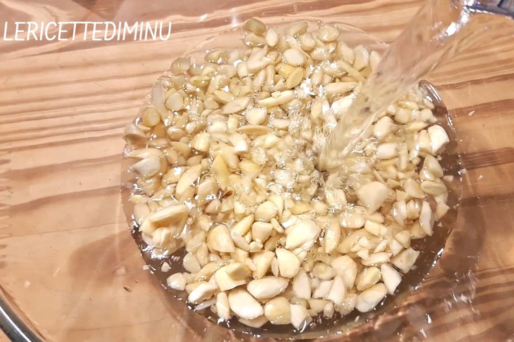 Para preparar o leite de amêndoas sem açúcar, se tivermos amêndoas ainda com pele, será necessário primeiro mergulhá-las por pelo menos 5 minutos em água fervente e depois remover a pele.