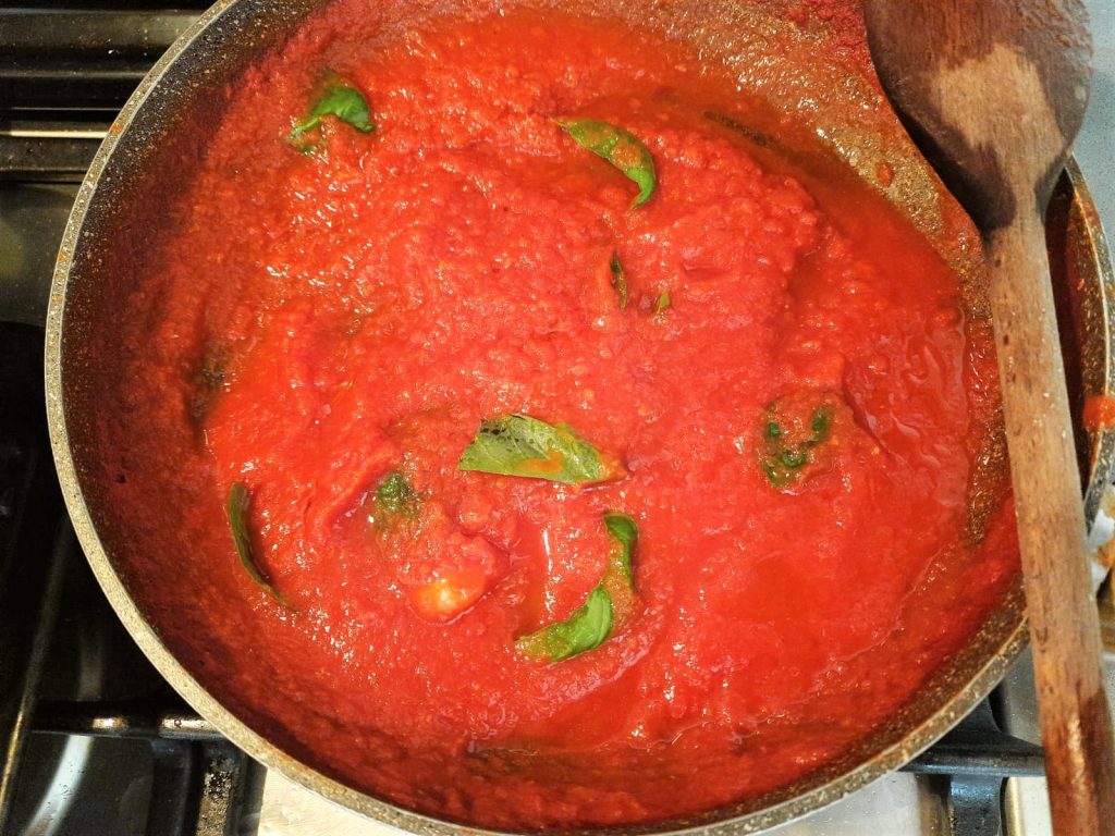 Nós tínhamos terras e morando na Sicília, no verão chegavam à minha casa abundância desses vegetais e hortaliças e assim se preparava também o molho, com os tomates recém-colhidos.