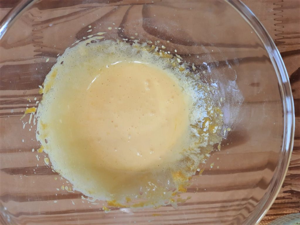 Em uma tigela separada, trabalhe as gemas com açúcar e vanilina (ou 1 colher de chá de extrato de baunilha).