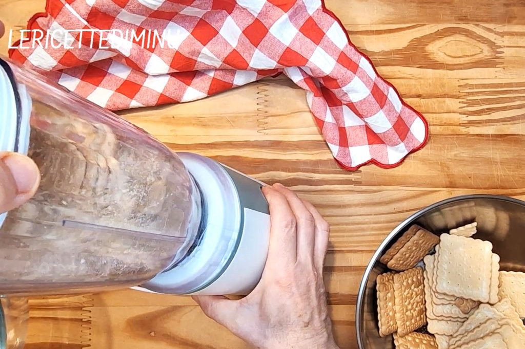 Em um liquidificador (ou mixer), triture bem os biscoitos secos.