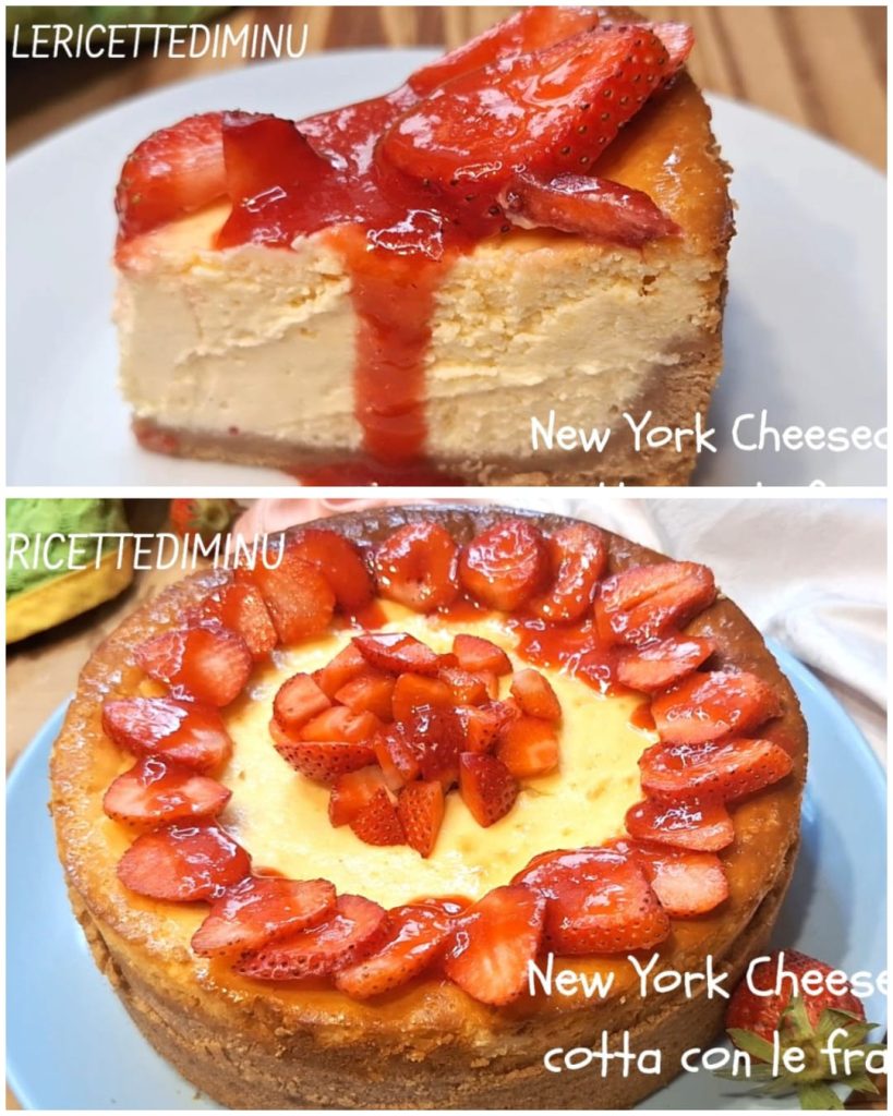 A New York cheesecake com morangos é um bolo americano, com um recheio à base de queijos cremosos e creme de leite. É um tipo de cheesecake assado, criado pela primeira vez por um alemão, proprietário de vários restaurantes na América.