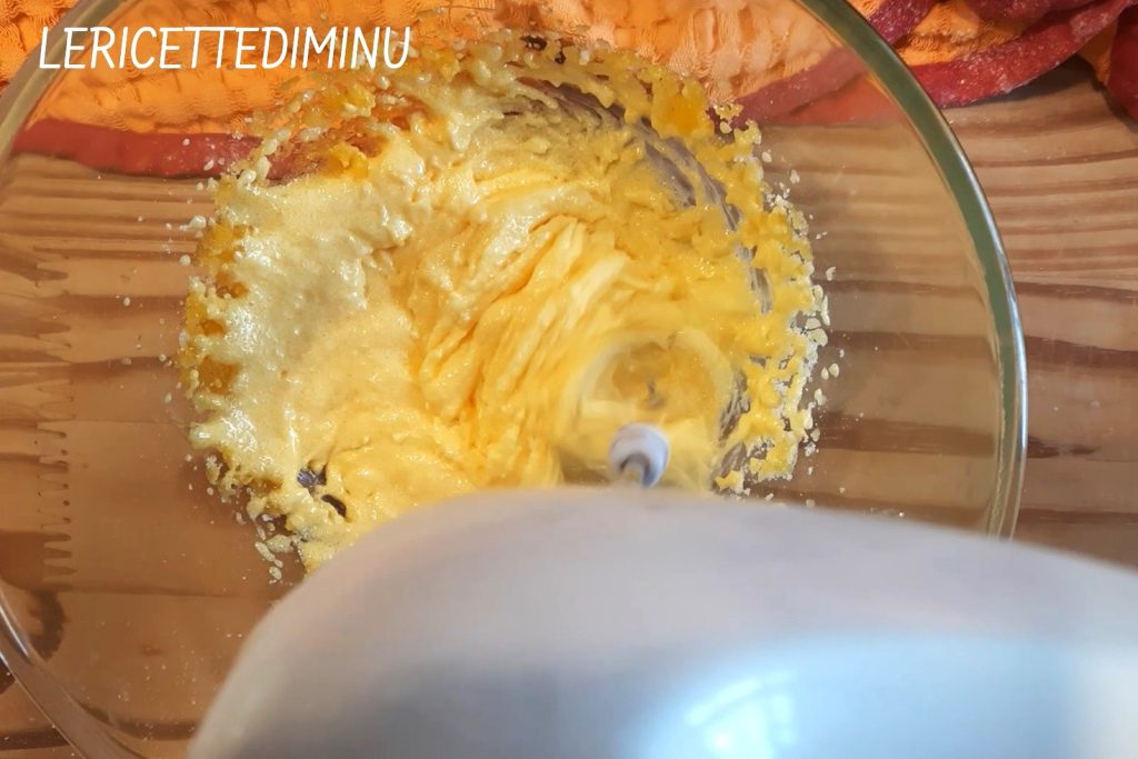 Adicione um pacotinho de vanilina, a casca ralada de um limão não tratado e, por fim, a farinha em várias etapas.