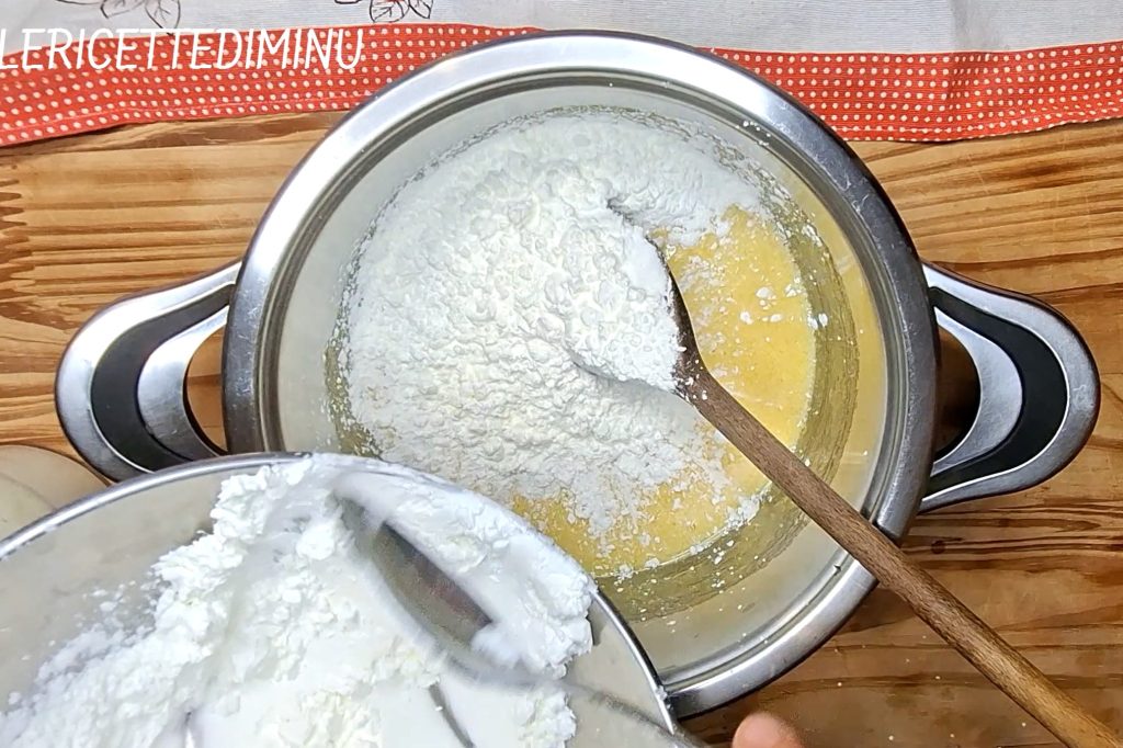 Adicione gradualmente o amido alternando com a adição de leite, enquanto incorpora.