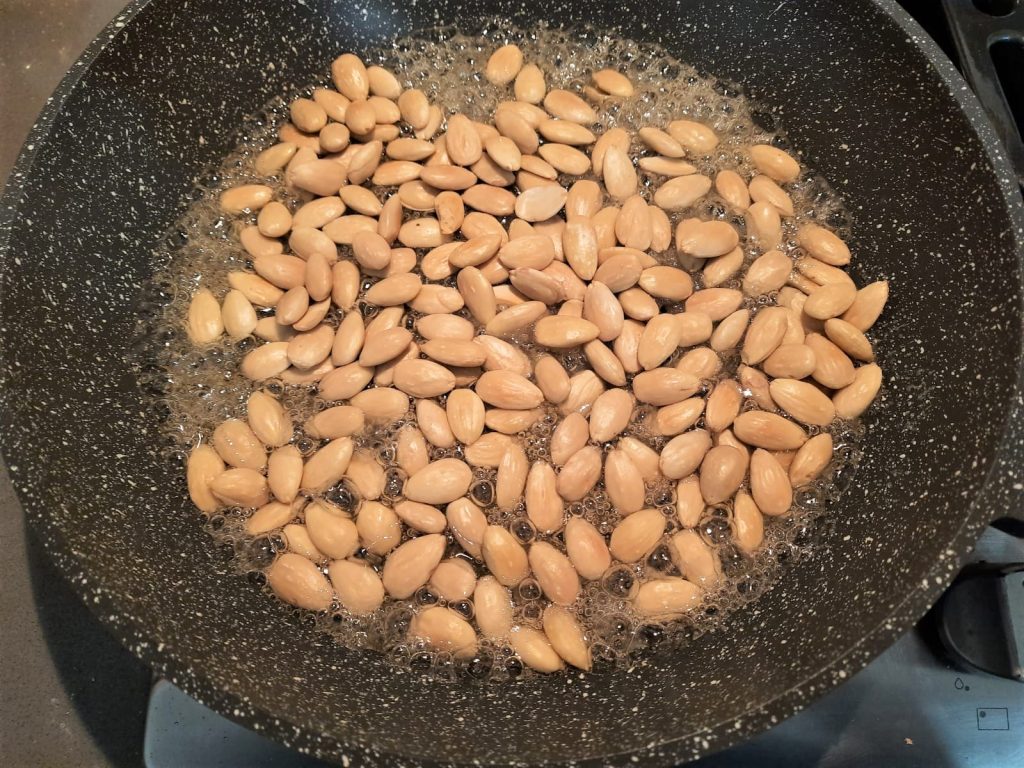 Espere até que todo o açúcar se dissolva e as amêndoas estejam caramelizadas.