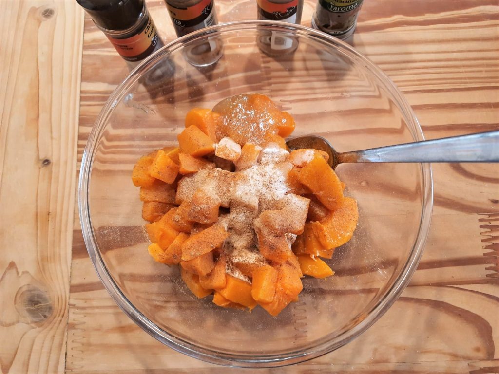 Asse a 180 graus em forno pré-aquecido, função estática, nível médio/baixo, por cerca de 20/25 minutos, ou até que a abóbora esteja macia.