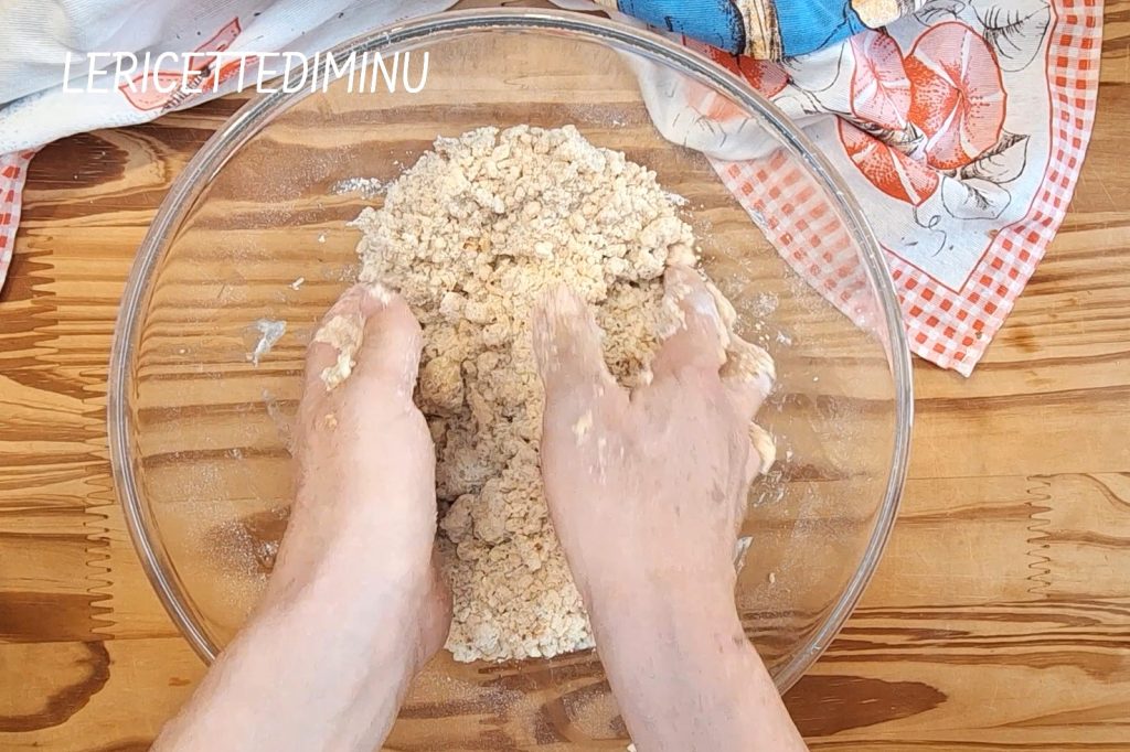 Misture rapidamente e envolvendo o bloco obtido na película, deixe descansar na geladeira por pelo menos uma hora.