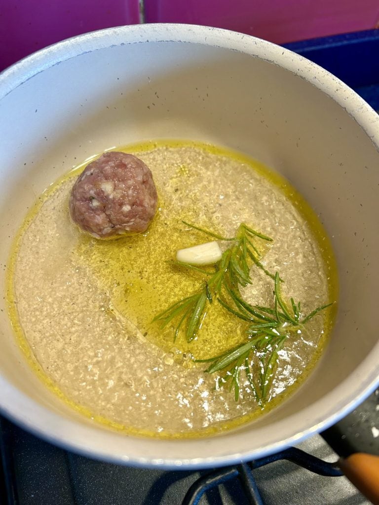 As almôndegas em branco fáceis e rápidas são um segundo prato que conquista todos: agradam adultos e crianças, são preparadas em poucos minutos e trazem imediatamente o aroma de casa à mesa. Normalmente as cozinhamos no molho, mas desta vez eu quis experimentar uma versão diferente: cozidas na frigideira com óleo, vinho branco, alho e alecrim. Uma receita simples e saborosa, perfeita para um jantar de última hora ou para servir como aperitivo quente. O resultado? Almôndegas macias e saborosas, com um molho delicioso para fazer a famosa ‘scarpetta’!