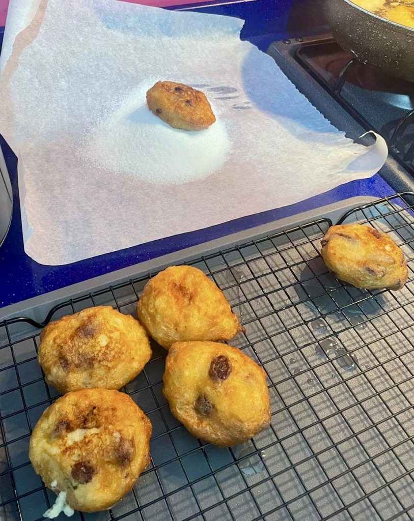 Após fritas, deixe escorrer bem os bolinhos e depois passe-os no açúcar cristal. Para eliminar o excesso de óleo, além de escorrê-los na grelha, recomendo secá-los cuidadosamente com papel absorvente. Este passo não comprometerá a maciez dos bolinhos, mas permitirá torná-los mais leves antes de passá-los no açúcar.