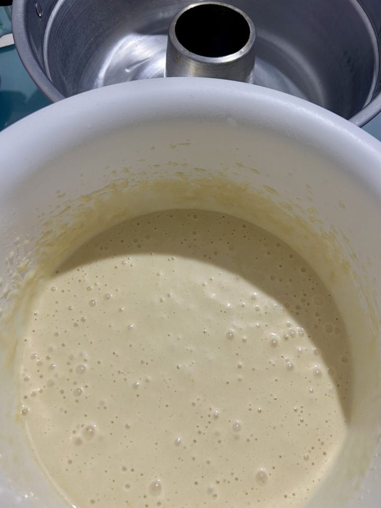 Sempre continuando a bater com o batedor elétrico, adicionamos gradualmente todos os outros ingredientes, seguindo a ordem indicada na lista. Misturamos bem até obter uma massa lisa e homogênea, pronta para ser despejada na panela Versilia.