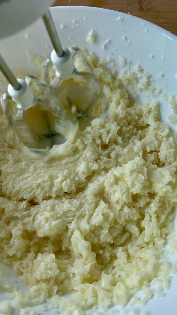 Em outra tigela, coloque a manteiga amolecida e o açúcar, depois misture tudo com a batedeira elétrica até obter um creme. Adicione o creme de limoncello e continue a misturar até que o composto esteja homogêneo. Adicione a farinha em duas etapas, misturando bem para evitar grumos, em seguida, incorpore o fermento e misture até obter uma massa lisa.