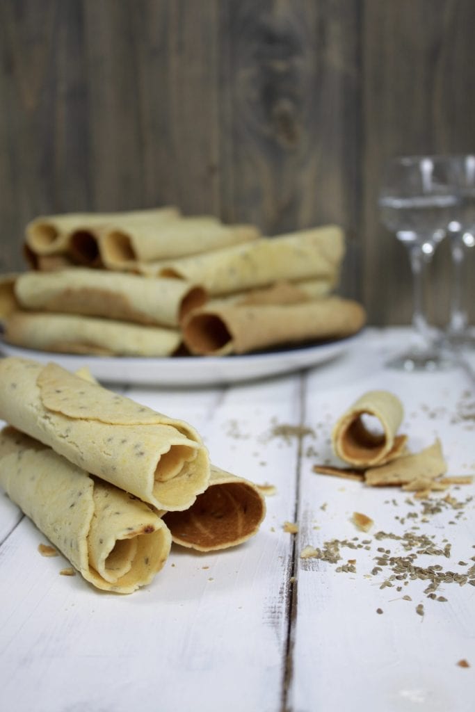 Para a cocção, meu conselho é virar o ferro após cerca de 30 segundos, se estiver bem quente. Cozinhe também o outro lado por cerca de 30 segundos, depois vire novamente por alguns segundos. Se parecerem cozidos, retire o ferro do fogão. Com a ajuda de uma espátula, desprenda cuidadosamente o waffle do ferro e, usando tanto a espátula quanto os dedos, enrole-o sobre si mesmo para criar um canudo. Continue dessa forma até terminar a massa.