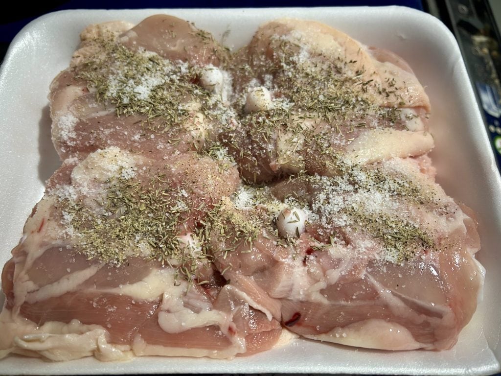 • Tempere as coxas com sal, pimenta e tomilho.