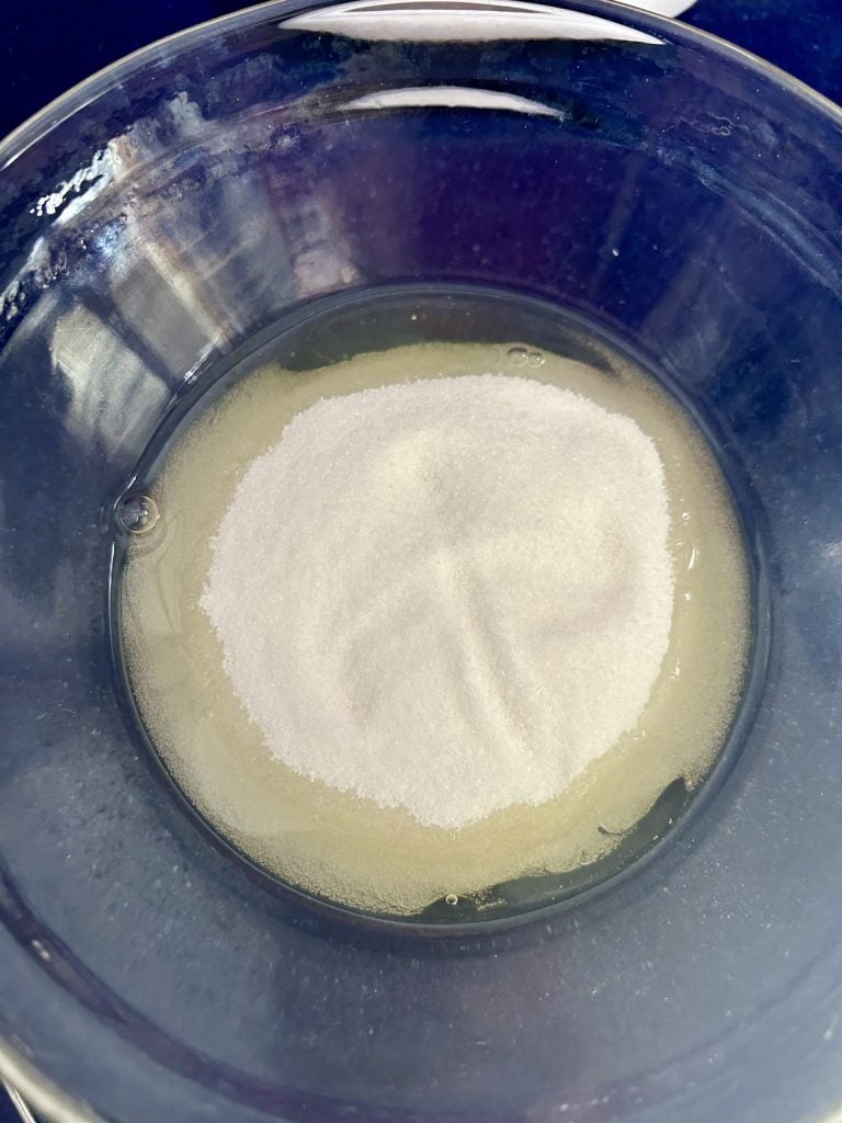 Adicione o açúcar e comece a bater com batedores elétricos.