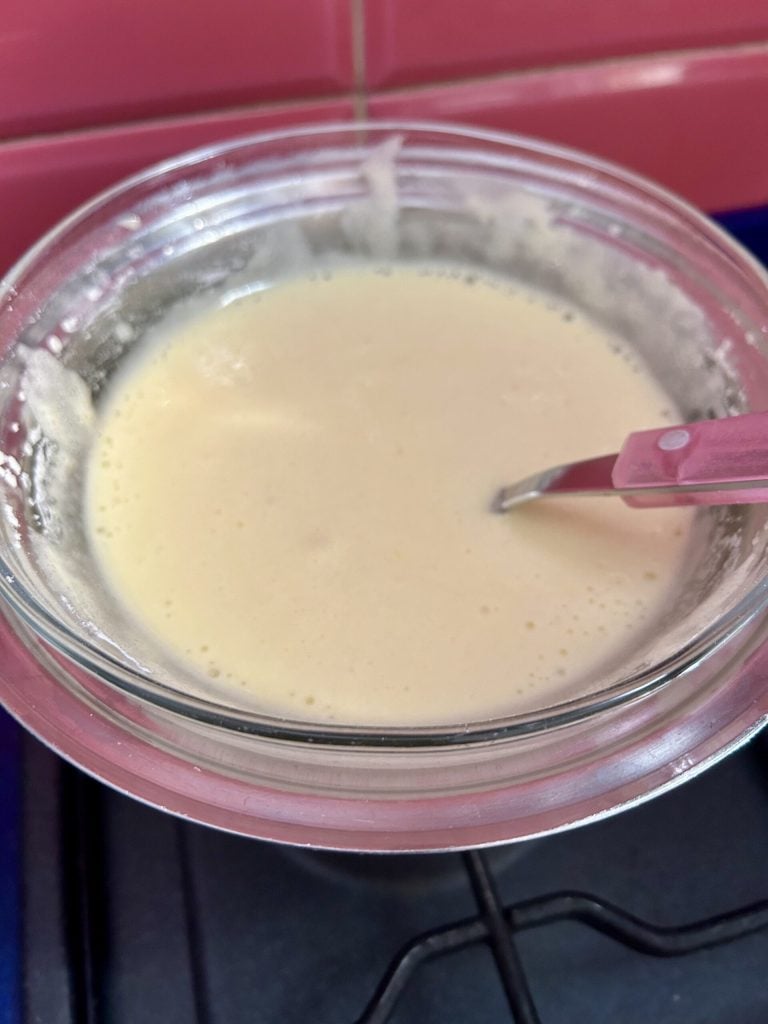 Misture continuamente o creme com uma colher, até começar a engrossar. Levará cerca de 10 minutos.