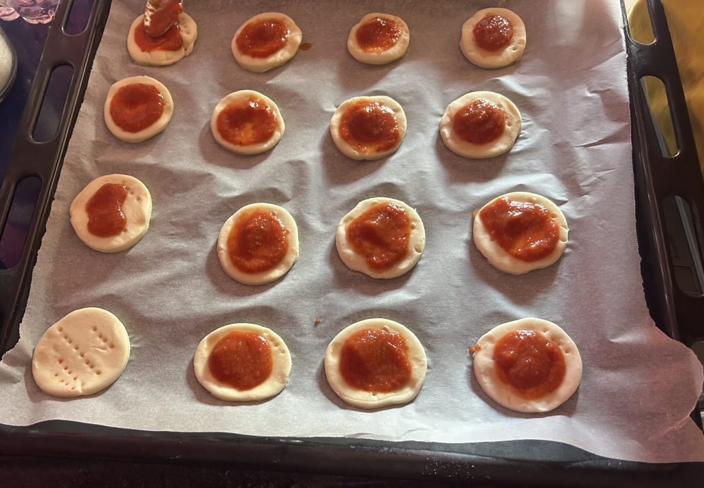 A preparação das mini pizzas de massa folhada é simples e rápida: basta abrir a massa, cortá-la e cobri-la com uma colherzinha de tomate, depois é só assar e saborear!