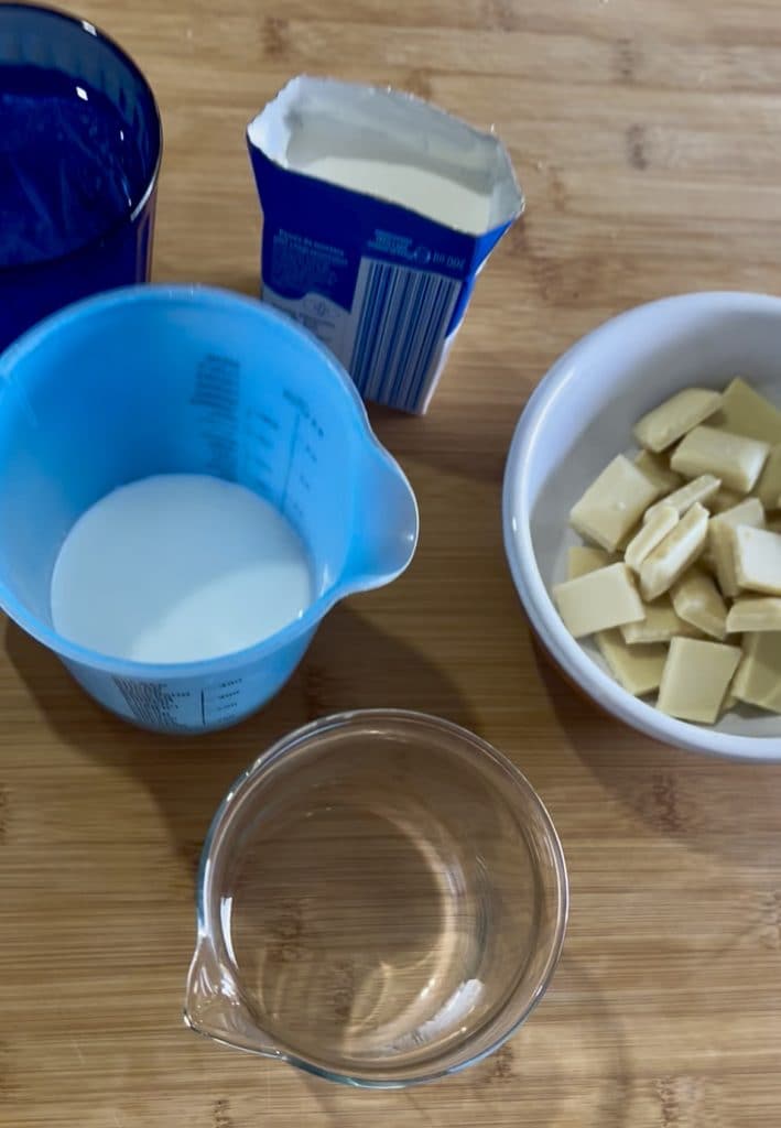 Meça 200 ml de creme de leite fresco para bater, deve estar frio.
