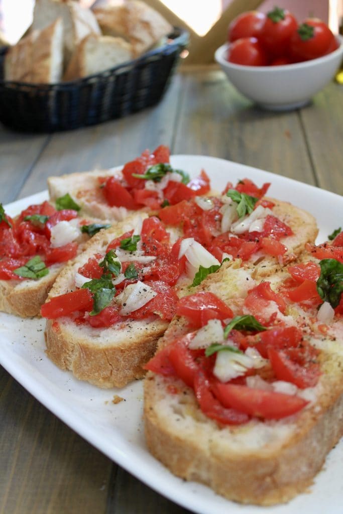 Os tomates devem ser maduros e suculentos, de preferência para salada. O segredo de uma panzanella bem-sucedida é o equilíbrio entre azeite de oliva extravirgem, vinagre de vinho branco, sal e pimenta.